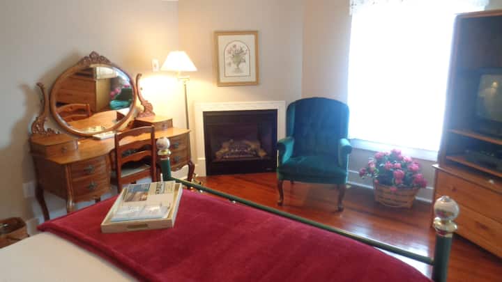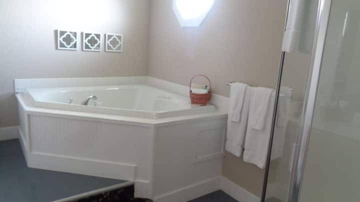 Maison Wampler ; chambre Williams : lit Queen Size, jacuzzi, petit déjeuner