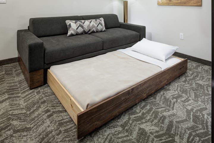 1 lit king size, 1 canapé convertible