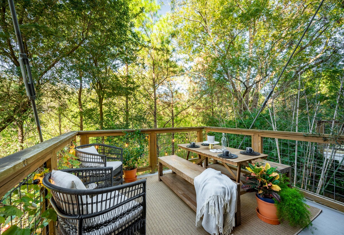 3100 pieds carrés de luxe à Woodland Heights, nichés entre le tranquille Woodland Park et le centre-ville animé. Daikin Park, Toyota Ctr et George R. Brown Convention Ctr sont tous à 5-10 minutes. NRG Stadium à 18 minutes. WIFI RAPIDE 300 Mbps. Vue imprenable. Maison de 4 niveaux avec 2 patios, véranda couverte, jardin et terrasse sur le toit. 4 chambres, 3,5 salles de bain et garage. Cuisine design entièrement équipée et portes vitrées en accordéon pour une vie intérieure/extérieure transparente. Accès à des kilomètres de sentiers de randonnée et de pistes cyclables depuis la porte d'entrée.
