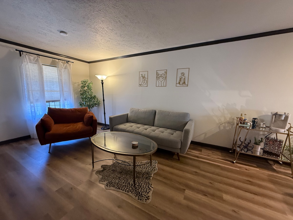 Welcome to the Haven! You are greeted by a modern accent fireplace wall, setting the tone for the entire space. The exquisite decor pieces throughout the home add a touch of sophistication and charm. Highlights of the home is the beautiful floral accent wall in the Love Pad room-Such a vibe! Step outside to the screened-in exterior patio, perfect for enjoying the fresh air and relaxing outdoors. This home is a perfect blend of modern design and cozy charm, offering a unique experience for all!