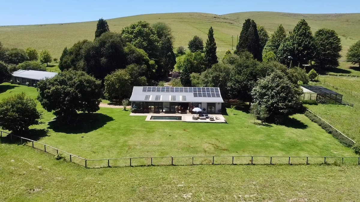 Profitez d'une vie paisible mais sophistiquée dans une ferme tranquille avec des bovins, des moutons, des poules et des canards. Marchez dans les forêts indigènes, courez, faites du vélo, pagayez avec nos kayaks sur le barrage ou asseyez-vous simplement à côté de votre cheminée et détendez-vous. Maison entière de quatre chambres avec salle de bains avec de nombreux espaces de vie et de divertissement à usage exclusif. Un lieu de séjour agréable en famille. Le prix est pour 4 personnes. Voyageurs supplémentaires facturés en sus. Maximum 8 voyageurs autorisés. NB : grand étang à canards à 20 m de la ferme.