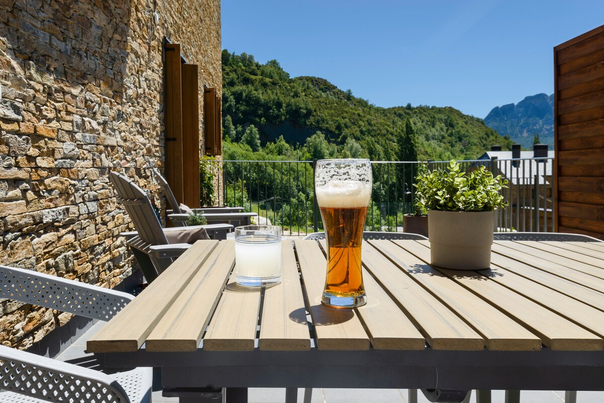 Vivez une expérience exclusive dans cet hébergement sophistiqué, à quelques pas des lieux les plus emblématiques des Pyrénées et conçu pour allier confort et élégance. Wifi| barbecue| jardin |cheminée| piscine| parking Découvrez à 5 minutes le centre historique d'Aínsa, l'un des plus beaux villages médiévaux d'Espagne. Profitez des itinéraires à travers le parc national d'Ordesa et Monte Perdido en seulement 60 minutes, ou approchez-vous de l'impressionnant canyon d'Añisclo en 45 minutes.