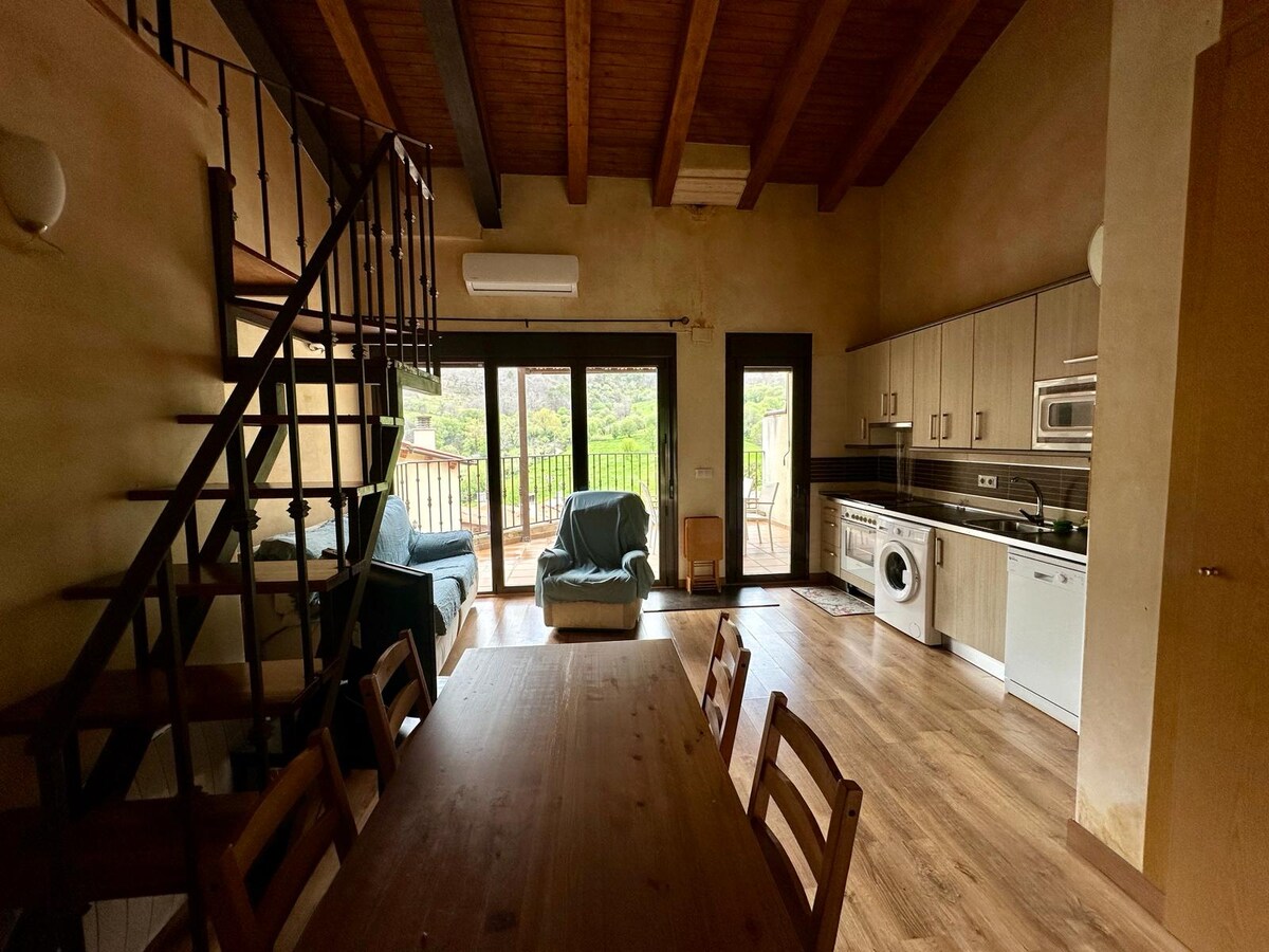 Moulin réhabilité avec une extrême délicatesse qui conserve une partie de ses machines d'origine. Il dispose d'un chauffage central à granulés et d'un poêle à bois. Il dispose de deux chambres doubles et d'une chambre quadruple, toutes avec salle de bains privée. Salon-salle à manger avec vue sur la vallée et la gorge. Il dispose d'un canapé-lit à ouverture italienne et d'une autre salle de bains. Cuisine industrielle, idéale pour les amateurs de gastronomie. Toutes les chambres ont une vue spectaculaire sur la rivière.