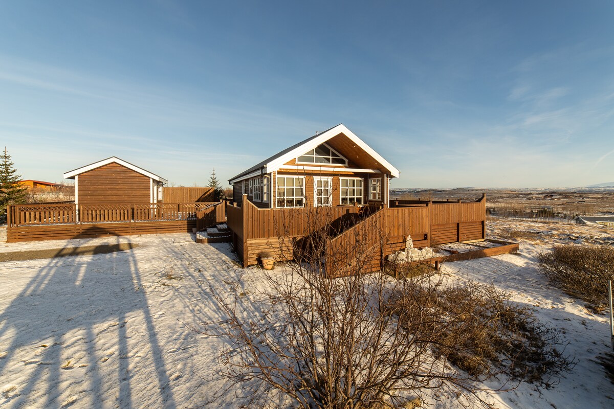 Un chalet confortable avec de superbes vues et un cadre magnifique. Situé entre le parc national de Thingvellir et la zone géothermique de Geysir, l'emplacement des cabanes le rend parfait pour ceux qui veulent voyager dans le sud de l'Islande avec la capitale à seulement une heure d'ici. La cabineest équipée d'appareils modernes, d'un four, d'une cuisinière, d'un lave-vaisselle, d'un four à micro-ondes, d'un barbecue, d'une télévision et d'un DVD, etc. Le jacuzzi est notre préféré, en particulier pendant les froides nuits d'hiver, lorsque les aurores boréales illuminent le ciel. Nous adorons notre cabane, nous parions que vous l'allez aussi.