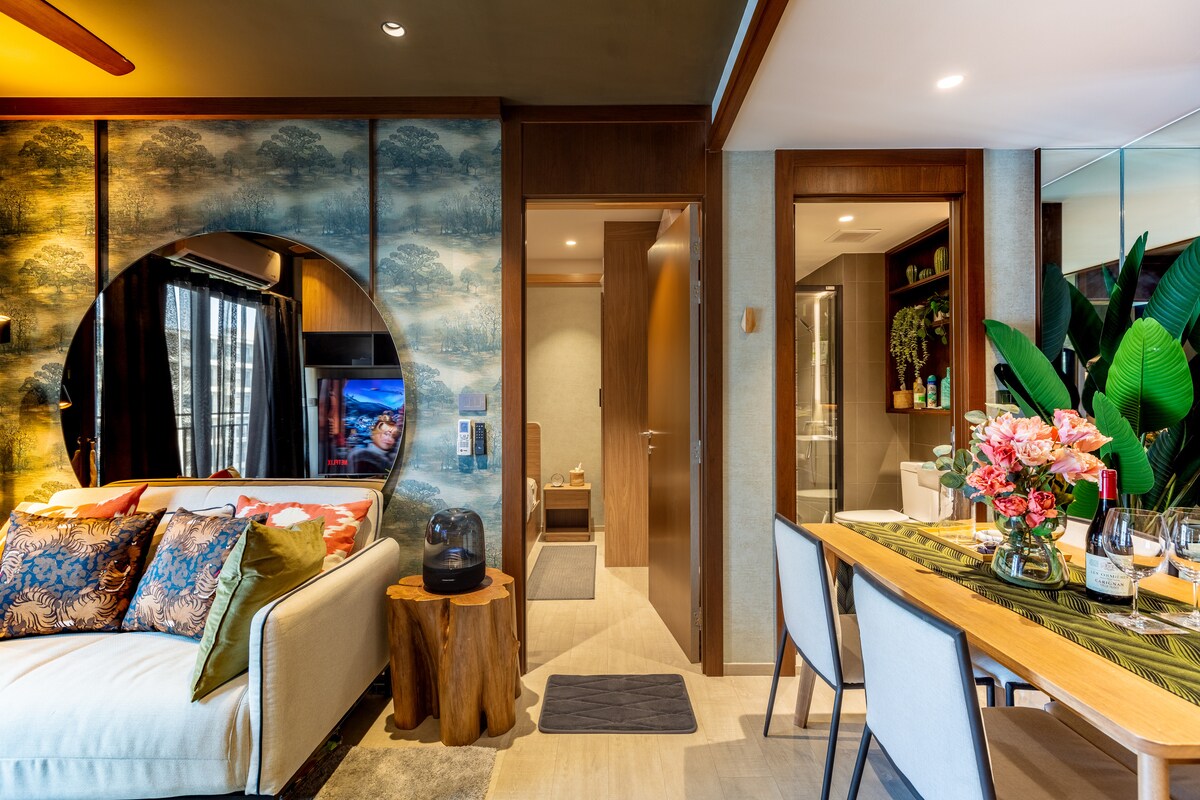 2 chambres et 2 salles de bains avec 1 canapé-lit. Belles installations : grande piscine et toboggan, salle de sport et petite aire de jeux pour les enfants. Très bien situé !! Vous pouvez vous rendre à pied au marché Tamarind & Cicada en 1 minute et à la plage en 3 minutes. Ou vous pouvez demander le chariot pour la plage.