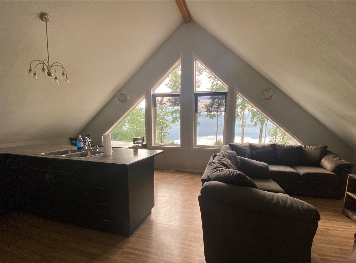 Si vous visitez ou travaillez près du lac Moberly, louez le logement supérieur du gîte ! Le salon offre une vue incroyable sur le lac ! Ajoutez un chocolat chaud ou un verre de vin et regardez les aigles ou les vagues faire fondre le stress ! La pollution lumineuse minimale vous permet de regarder les aurores boréales depuis le salon. Le gîte dispose d'une cuisine avec réfrigérateur, four, micro-ondes et lave-linge/sèche-linge. Le logement d'une chambre n'a pas de canapé-lit. Le bistrot faisant face à la colline se trouve dans la porte d'entrée. Cette unité est pet friendly.