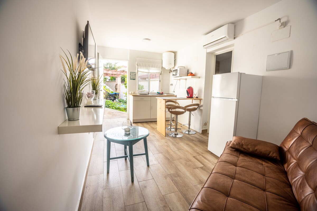 Oubliez leurs soucis. Profitez de notre maison d'hôtes pour 2 personnes avec piscine privée, coin repas extérieur et toit-terrasse avec vue unique. L'appartement dispose de la climatisation, d'une cuisine complète, d'une salle de bain moderne complète, d'une chambre avec lit double et d'un placard, d'un salon avec salle à manger et d'une télévision. Les portes coulissantes et entre les espaces ne sont pas à l'intérieur du seuil.
