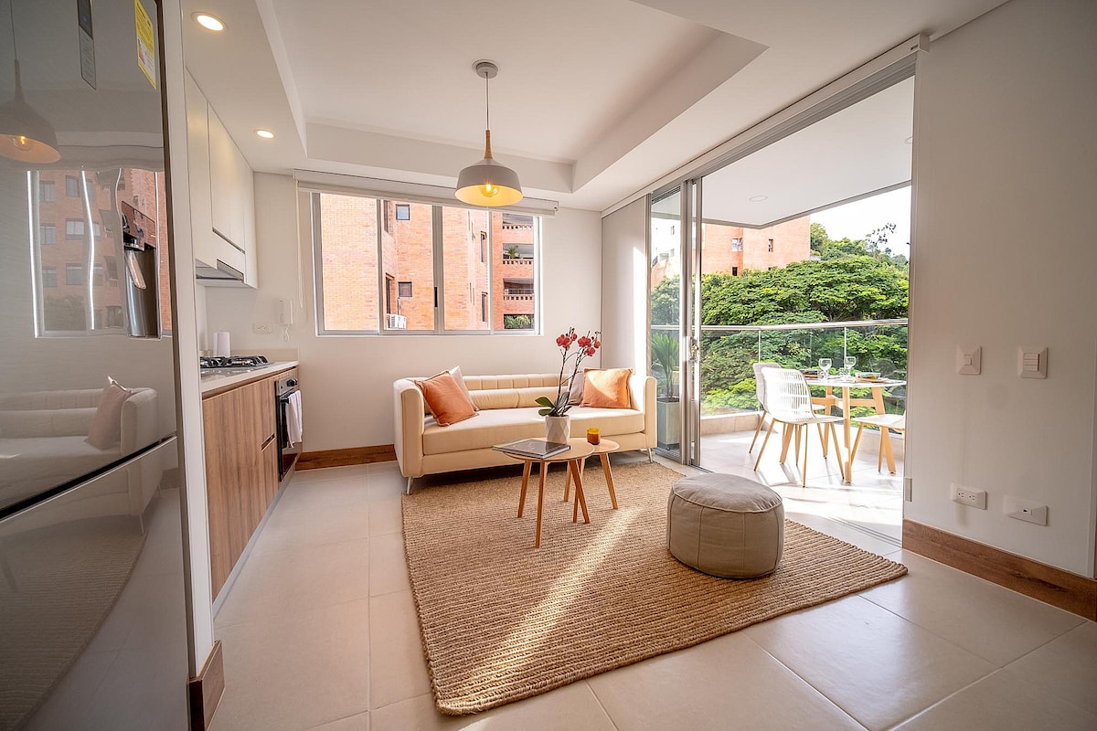 Appartement Loft au 7e étage avec balcon incroyable et vue sur le jardin. Il se compose d'une chambre avec un lit king de haute qualité, une salle de bains et un dressing privé, entièrement équipé avec la climatisation, le wifi de 300 mb, un coffre-fort, une télévision intelligente avec abonnement à Netflix et plusieurs chaînes de télévision. Cuisine avec ses ustensiles. Le bâtiment Hayedo de Juanambu dispose d'une réception avec surveillance privée 24 h/24 et 7 j/7, d'ascenseurs, d'un parking couvert, d'un bel espace social, d'une salle de sport, d'un hammam, d'un espace de coworking, d'une piscine au 9e étage.