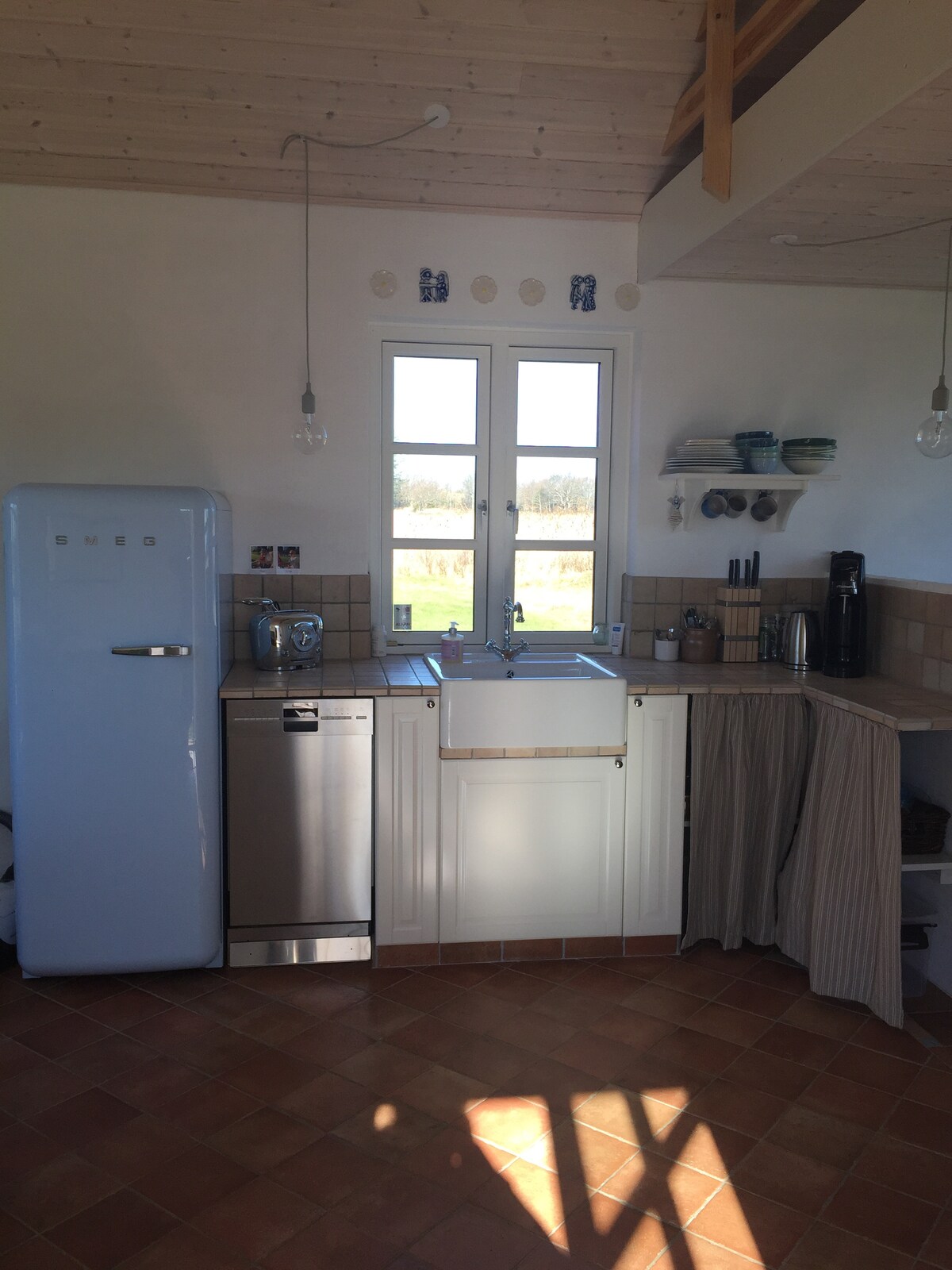 Charmant chalet rétro avec une vue imprenable sur la mer. Profitez du coucher de soleil sur les dunes depuis la cuisine ouverte. Les grandes fenêtres offrent lumière et visibilité. Ou détendez-vous par une froide journée d'hiver devant le poêle à bois et admirez la mer du Nord rugissante. Salon avec alcôves confortables, vue sur l'océan. 2 chambres, salle de bain et loft avec espace pour 2 personnes supplémentaires. Remarque : le prix est hors nettoyage : 700 DKK pour les séjours de plus de 3 jours, sinon 500 DKK pour les séjours de moins de 3 jours. Payé au départ.