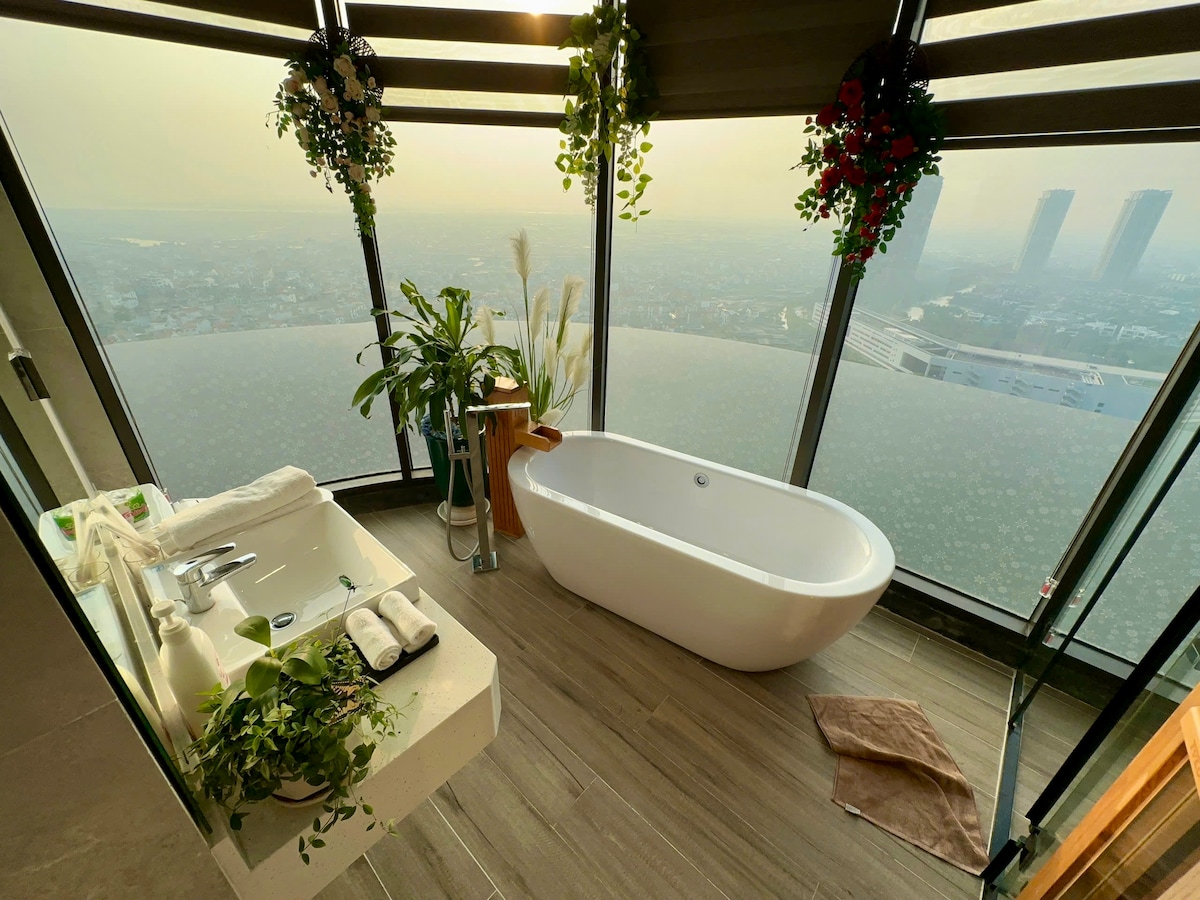 Bienvenue à Ecopark – Luxury Onsen Landmark Apt - Style : 3 chambres parfaites pour les couples, les familles et les groupes. - Équipements complets : 2 grandes salles de bains, cuisine moderne, lave-linge, sèche-linge, climatisation et Wi-Fi. - Confort : sauna privé, superbe baignoire avec vue panoramique sur le lac, smart TV, projecteur de cinéma, bureau. - Commodité : ascenseur, sécurité 24h/24 et 7j/7 - Emplacement privilégié : situé à Swan Lake, golf et parc japonais, au cœur d'Ecopark. Entouré de cafés, de restaurants et de magasins… À seulement 30 minutes du centre-ville de Hanoï.