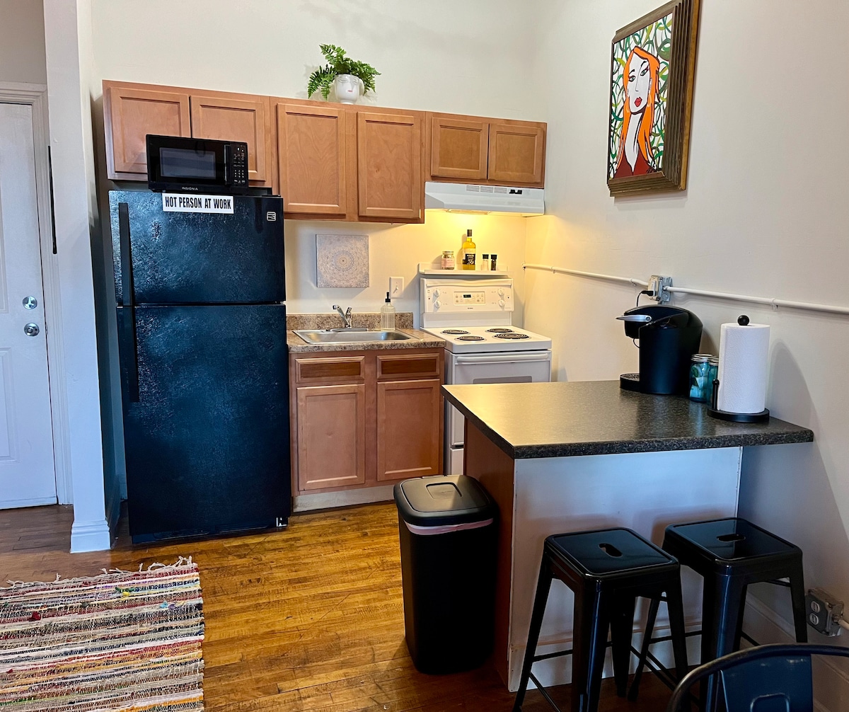 (367) PARFAIT 5 ★ : les commentaires disent tout !! Airbnb vient d'ajouter cet appartement de charme situé à Brush Park à sa liste exclusive des « Coup de cœur voyageurs ». Situé au centre, entre Downtown, Midtown et Eastern Market, cet établissement offre une atmosphère animée : de nombreux restaurants, bars, cafés et stades de Detroit, tous primés, se trouvent littéralement à quelques pas de notre porte d'entrée. Nous faisons partie d'une superbe communauté résidentielle, avec d'autres propriétaires au-dessus et en dessous de nous. Le respect des propriétaires dans l'immeuble est absolument indispensable.