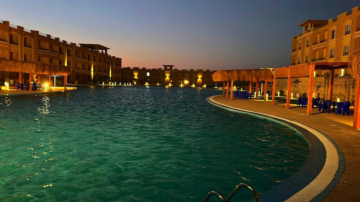 ✨🏖️ Chalet de luxe avec vue directe sur la piscine & plage privée ✨🏖️ Profitez d’un séjour inoubliable au cœur de la promenade touristique de Hurghada 🌴, à côté des meilleurs hôtels ⭐. Finitions élégantes et vue sur l’une des plus grandes piscines 🏊♂️. Cuisine équipée 🍳, machine à expresso ☕, bouilloire 🍵. Près de Carrefour 🛒 et Duty-Free 🛍️. Plage privée de sable 🏖️, balades du soir avec cafés ☕, bars 🍹 et boutiques 🛍️.