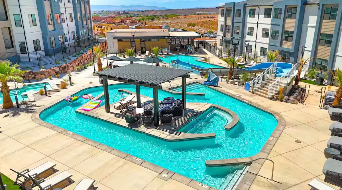 Monkey Business ? 🦍 Pas question... Nous prenons l'accueil de voyageurs au sérieux. Mais ce n'est pas un Airbnb comme les autres… À moins que votre moyenne ne comprenne un gorille qui sait se détendre avec style. (Ce n'est certainement pas de l'IA) 👀 ✔ À 30 min du parc national de Zions À ✔ 10 minutes de Sand Hollow Cuisine ✔ complète avec grand espace pour manger ✔ Piscine avec rivière paresseuse ✔ Foyer avec sièges extérieurs Consoles de jeux d'✔arcade ✔ Putting Green ✔ Jacuzzi dans la cour Salle de sport dans un✔ club house Réservez maintenant pour créer un souvenir avec vos amis et votre famille :)
