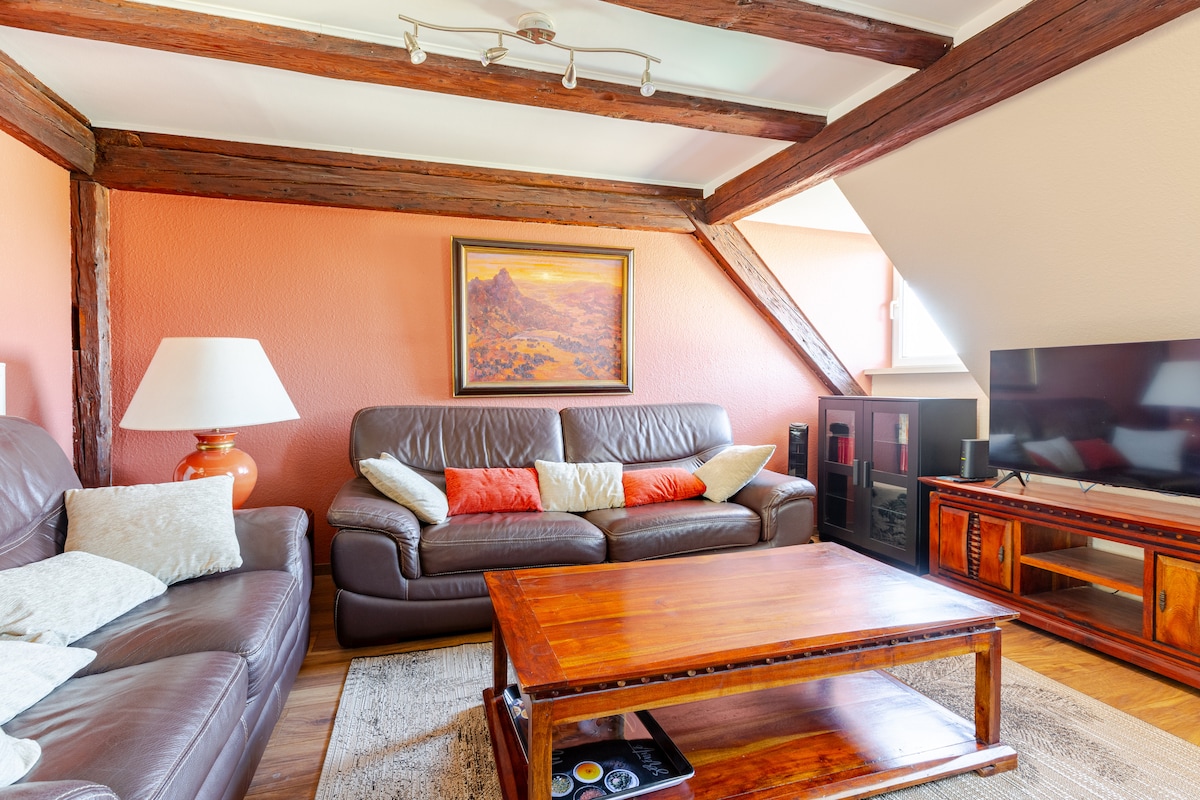 Vivez une parenthèse romantique dans notre loft de charme classé 4* au cœur de Barr, niché dans la cour d’une bâtisse alsacienne à colombages du 18e siècle. Un havre de paix spacieux et tout confort sur 2 étages, au calme, avec cuisine équipée ouverte sur un séjour cosy, lit Queen size, douche à l’italienne et WC séparés, dressing, climatisation, Smart TV. Un tandem pour les escapades à deux, et recharge pour vélos électriques. Garage privatif sécurisé. Un lieu singulier, raffiné et chaleureux.