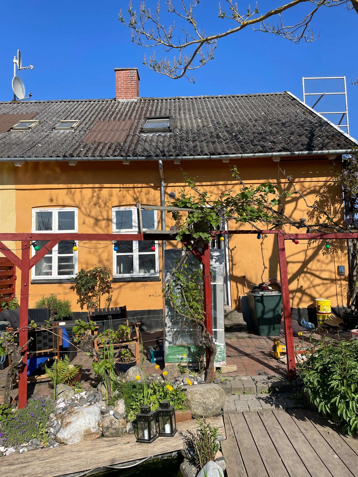 Détendez-vous à la campagne dans cette demeure paisible. Appartement lumineux et spacieux, nouvellement construit à la campagne avec accès au spa sur la terrasse en été et dans l'orangerie en hiver. Appartement de 2 pièces de 65 m² avec salle de bains privée, toilettes et cuisine. Il est situé en Zélande à environ 20 minutes de Ringsted, Holbæk, Roskilde et à 3 km de Tølløse avec de bonnes possibilités de shopping et des trains pour kbh. L'appartement est situé au 1er étage au-dessus d'un garage, avec sa propre entrée.