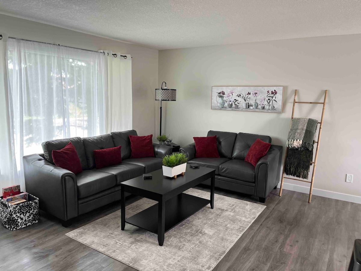 December month is available for montly rental only. Clean and spacious entire upper 1 bedroom suite located within the Lakeland Community.... the suite is equipped with all the appliances and other amenities necessary for a comfortable stay. As this suite is located above another unit , we kindly ask Guest to keep noise levels down during quiet hours 10pm to 8am to ensure a peaceful environment for all. Thank you for your cooperation.