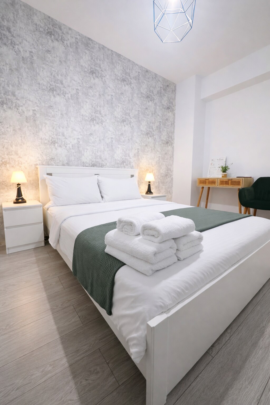✨ Appartement moderne avec 2 chambres spacieuses, parfait pour 2 à 4 personnes. Salon ouvert avec cuisine entièrement équipée et 🛋 canapé-lit, plus chambre séparée confortable. 🚋 Arrêt de tramway derrière l'immeuble pour un accès rapide au centre-ville. ✈️ Proche de l'aéroport de Iasi et idéalement situé à proximité du 🛍 centre commercial Iulius et du 🏛 centre commercial Palas. 📺 Télévision connectée, 📶 Wi-Fi rapide et ambiance chaleureuse pour se détendre ou travailler. 🔑 Arrivée autonome pour plus de flexibilité