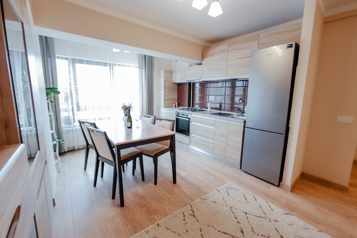 Logement idéal pour les couples ou les voyageurs célibataires, au cœur de Iasi, en Roumanie ! L'appartement est équipé de tout ce dont vous aurez besoin et plus encore, comme une cheminée 3D, une télévision connectée 3D, des options d'éclairage tactile par capteur et bien plus encore ! *Pour les touristes qui nous rendent visite depuis l'étranger, pour un séjour de plus de 10 jours, votre arrivée cet été signifie tellement plus ! Soyez prêt à être accueilli avec une attention particulière portée à la Roumanie : une bouteille de vin, pour déguster au maximum les authentiques raisins moldaves. À bientôt !*