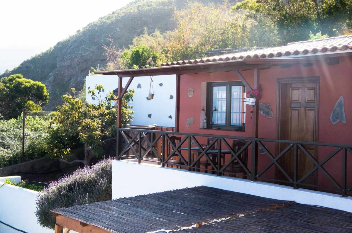 Belle VV, maisonnette rustique d'une chambre, avec une vue spectaculaire sur l'océan et la montagne. Situé dans le parc naturel de Tigaiga, c'est un endroit très calme pour se déconnecter, bien situé pour connaître le nord de Tenerife. À côté de la route, 0.4.0, Playa del Socorro al Pico del Teide. Dans la ferme qui dispose d'arbres fruitiers et de légumes biologiques. Dans la ferme La Espiral, il y a deux maisons de plus VV Sofia et VV Drago, avec toutes les commodités telles que parking, wifi, smart TV, Netflix, etc.