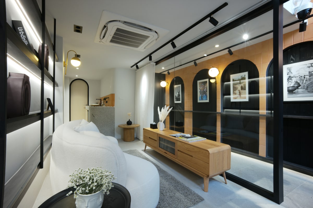 40 m² avec baignoire et balcon LOFT-D4 / 3 personnes / piscine sur le toit / près de RCA / près du marché de nuit du train / près de Tonglor