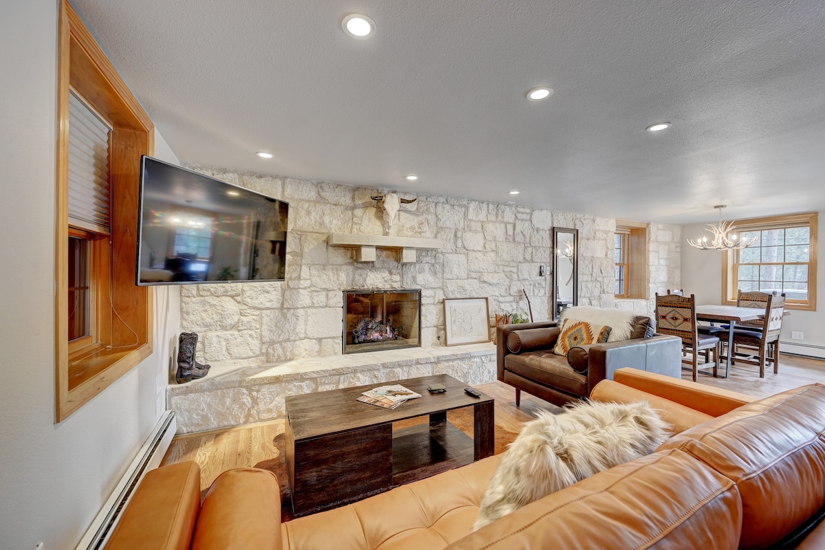 Permit #24-106357 You will feel worlds away on these 2 rolling acres. The cabin is a perfect mountain getaway to enjoy tranquil peace, yet only 3 minutes from I-70, restaurants, shops, trails, and beauty! The large sun room is the crowning glory of the cabin; it doesn't intrude on nature but is built with nature in mind. It places you in the middle of a wooded landscape boasting large windows all around that make you feel like you are outside in the snow, yet stay warm and cozy inside.