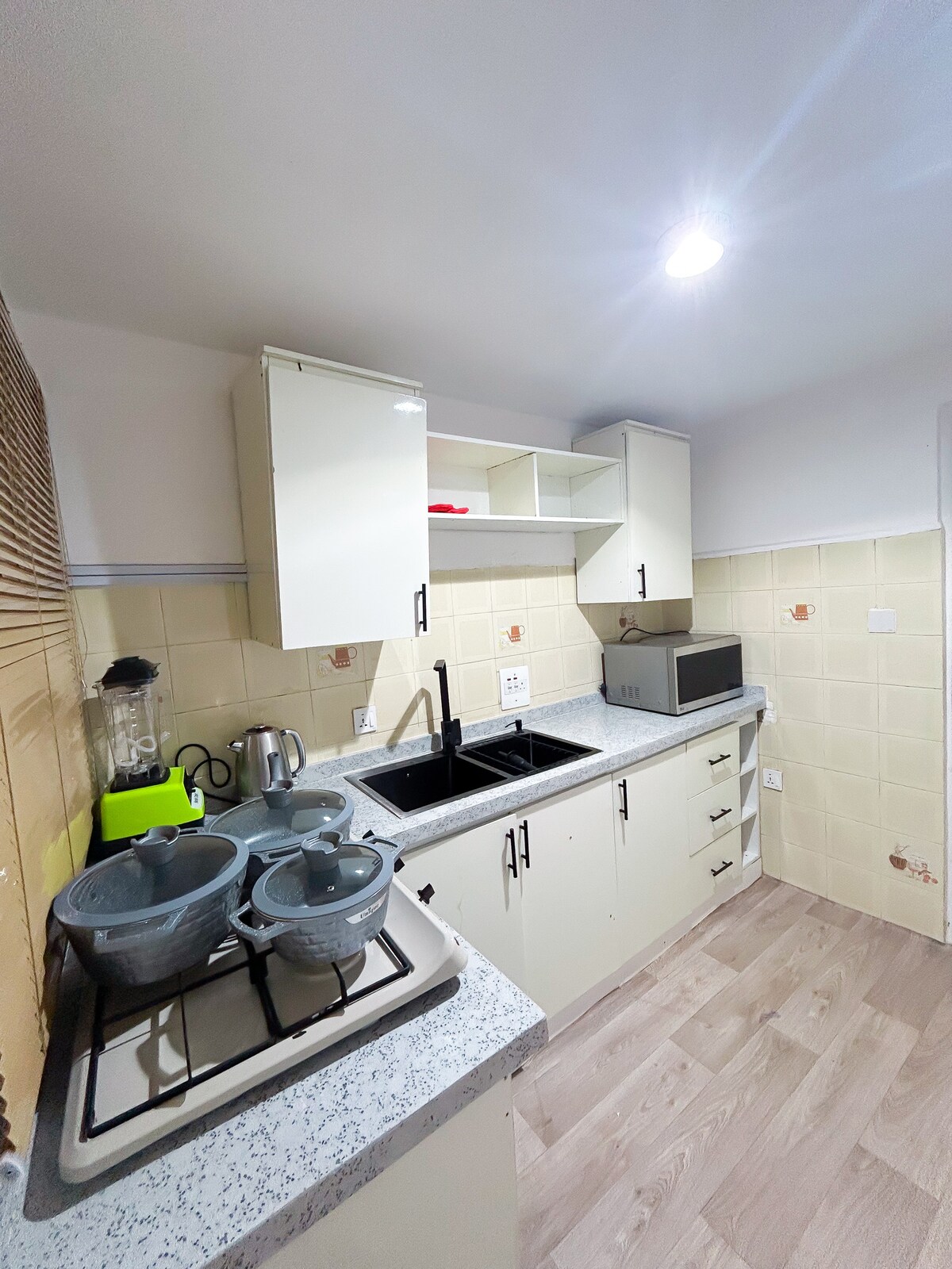 Salon spacieux et chambre avec salle de bain royale avec lit super king, salle de bain moderne et toilettes🚽. Appartement très propre et standard. Royal Pent House vous offre tout le confort moderne au-delà de votre imagination avec une connexion Wi-Fi haut débit illimitée, une télévision connectée de 43 pouces dans la chambre et une télévision connectée de 55 pouces dans le salon, YouTube, Netflix, DSTV. Canapé confortable, chauffe-eau, bouilloire, micro-ondes, gaz de cuisine. Détecteur de fumée, détecteur de monoxyde de carbone, alimentation 24h/24 et 7j/7. , vidéosurveillance, sécurité maximale avec personnel de sécurité 24h/24 et 7j/7.
