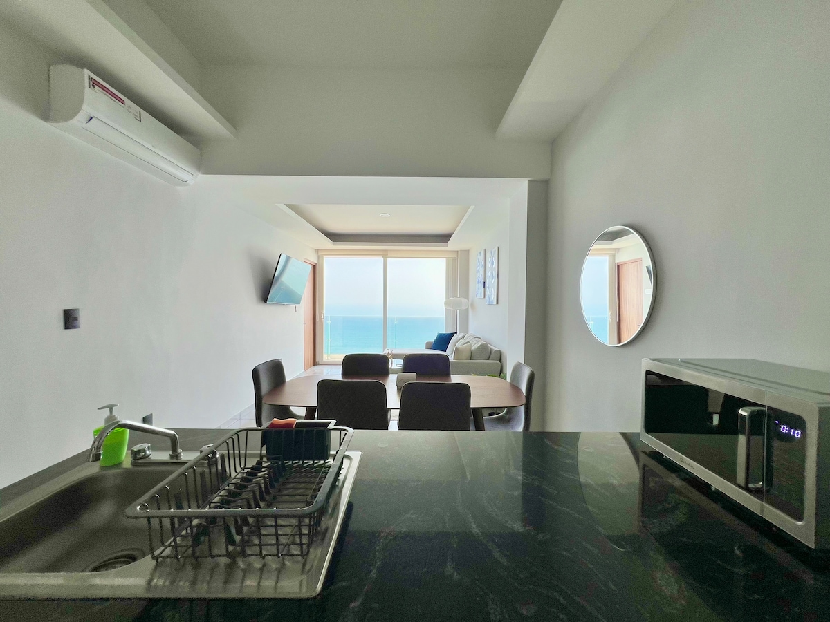 Los espacios de Zen House son un lugar para conectar contigo mismo, tus seres queridos y la magia que te rodea. Departamento de lujo frente al mar con: -🛏️ 4 recámaras con baño completo c/u (la principal con vista al mar) 🍽️ Cocina equipada 🛋️ Sala y comedor con vista al mar ❄️ Todas las áreas climatizadas 📶 Wi-Fi y SKY incluidos 🛡️ Vigilancia 24 hrs 🚗 Estacionamiento techado para 2 autos (altura máxima 2.1 m) 🛗 Elevador 🛒 Tienda de conveniencia en Planta Baja 🏊♀️ Alberca compartida