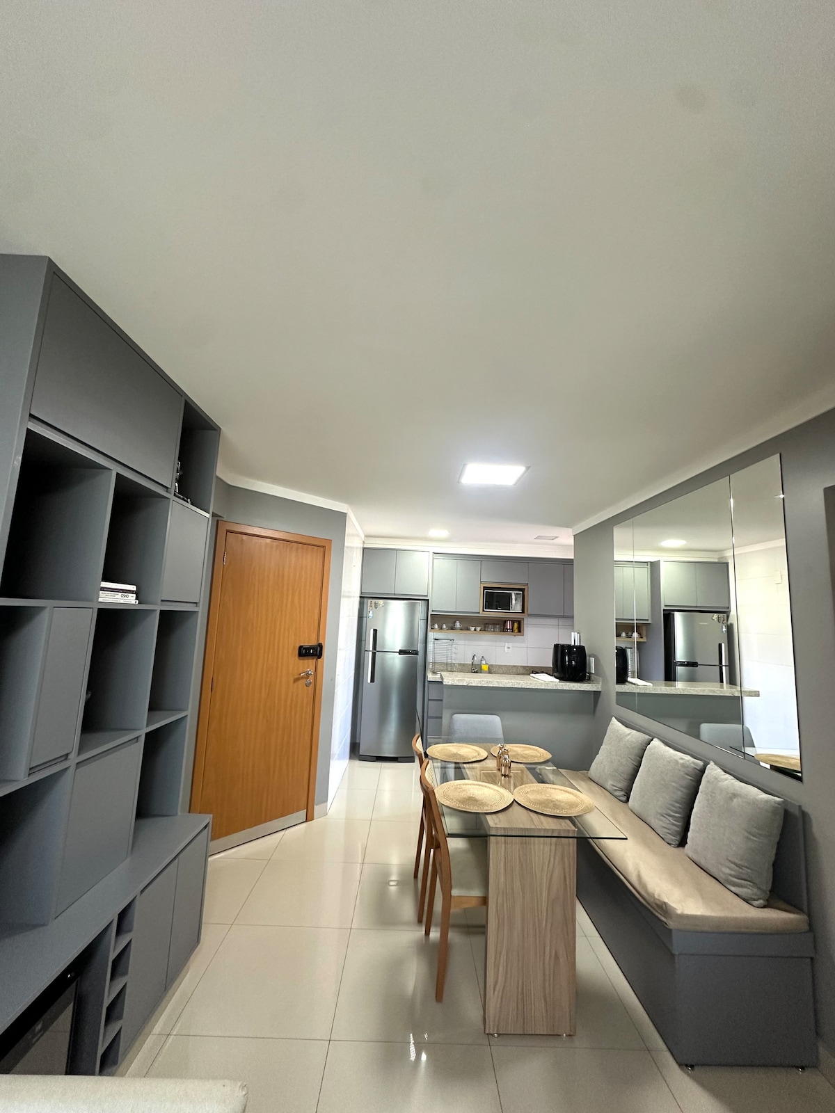 ❗️Un nouvel🤩 appartement en résidence unique, élégant et sophistiqué, conçu pour que vous vous sentiez chez vous. Regardez votre film préféré dans la chambre ou le salon sur la Smart TV pivotante la plus moderne avec la climatisation, une table à manger et un espace de travail dédié. Reposez-vous dans le meilleur lit, profitez de la douche la plus agréable, profitez du balcon et d'un magnifique coucher de soleil surplombant le parc, et profitez du Setor Bueno contemporain dans la meilleure région de Goiânia ! Condomínio Tai Residências