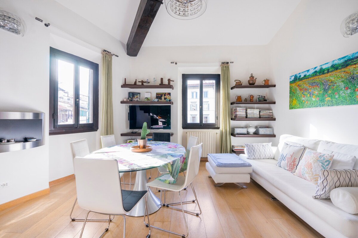 Au cœur du centre historique de Florence se trouve ce magnifique appartement de 90 m2. Grâce à l'emplacement et à la vue splendide sur Florence, vous vous sentirez immédiatement comme faisant partie de la ville. L'appartement est à deux pas du Ponte Vecchio et donc à proximité de toutes les attractions de Florence. N.B. L'appartement est situé en position élevée et pour l'atteindre, il y a une montée et deux volées d'escaliers à monter.