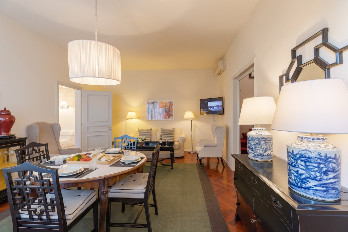 Élégance et confort au cœur de Florence ⚜️ Découvrez le charme d'une chambre principale avec poutres apparentes et d'un spacieux salon de 30 m² conçu pour votre détente. La cuisine est entièrement équipée avec des équipements haut de gamme (cafetière Bialetti, bouilloire, micro-ondes). Le point fort ? Deux salles de bain : une moderne avec douche et une seconde de style rustique avec baignoire. Profitez d'une indépendance totale avec l'arrivée disponible 24h/24 et 7j/7.