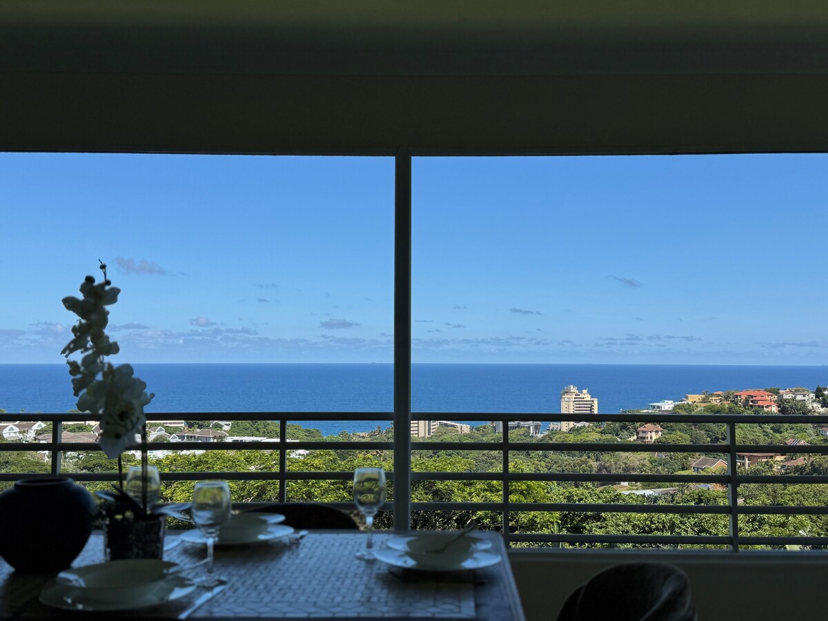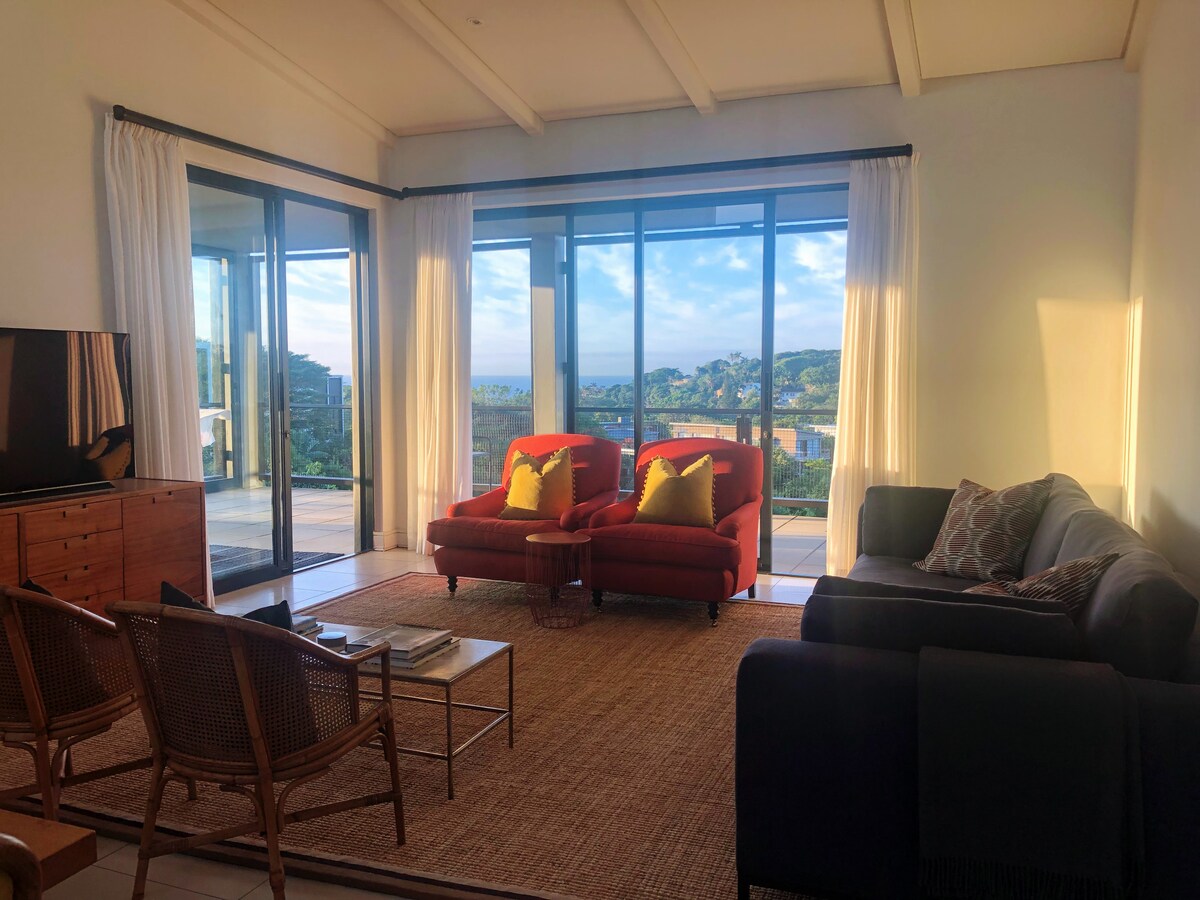Élégant appartement de 2 chambres dans le domaine haut de gamme de Dunkerque à Salt Rock, Ballito. Vue imprenable sur la mer, installations de la propriété, électroménager haut de gamme.