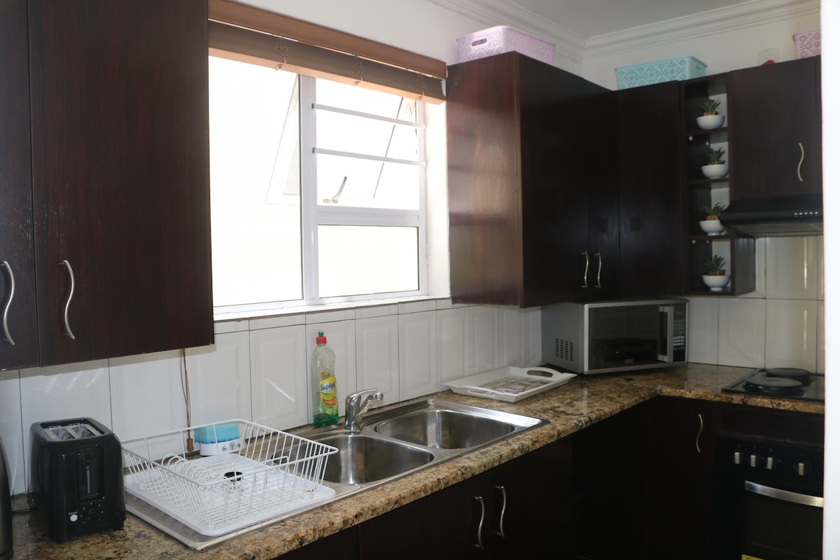 Évadez-vous dans une oasis sereine ! Charmant appartement 1 chambre avec jardin à Dorchester Heights. Entrée privée et parking pour 2 voitures. Détendez-vous dans le grand jardin avec barbecue et table d'extérieur. Profitez de DSTV, Netflix, WiFi et éclairage de secours. À 2 km du casino et centre commercial Hemingways. Animaux acceptés (sur demande). Arrivée autonome. Hôtes à proximité mais respect de votre vie privée. Parfait pour 2 personnes. Réservez maintenant !