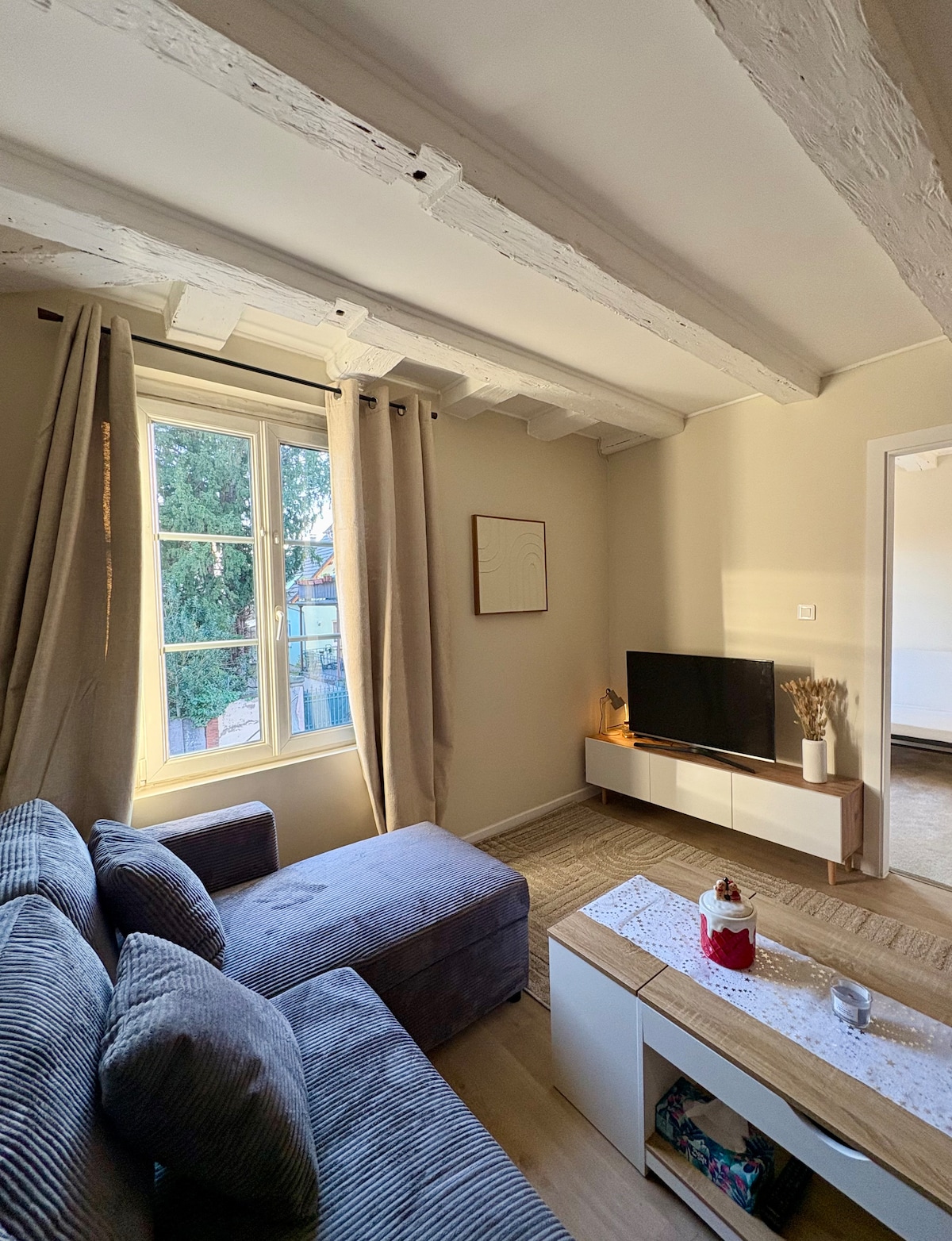 Bienvenue dans notre appartement F2 entièrement refait à neuf, situé dans une maison alsacienne typique avec de magnifiques poutres anciennes apparentes. Ce cocon chaleureux de 43 m² est parfait pour un couple ou une petite famille avec un ou deux enfants. À seulement 10 minutes de Strasbourg (en tram ou en voiture), vous êtes idéalement placés pour profiter de la ville, de sa cathédrale, du parlement européen , et du célèbre marché de Noël tout en séjournant dans un quartier calme et agréable.