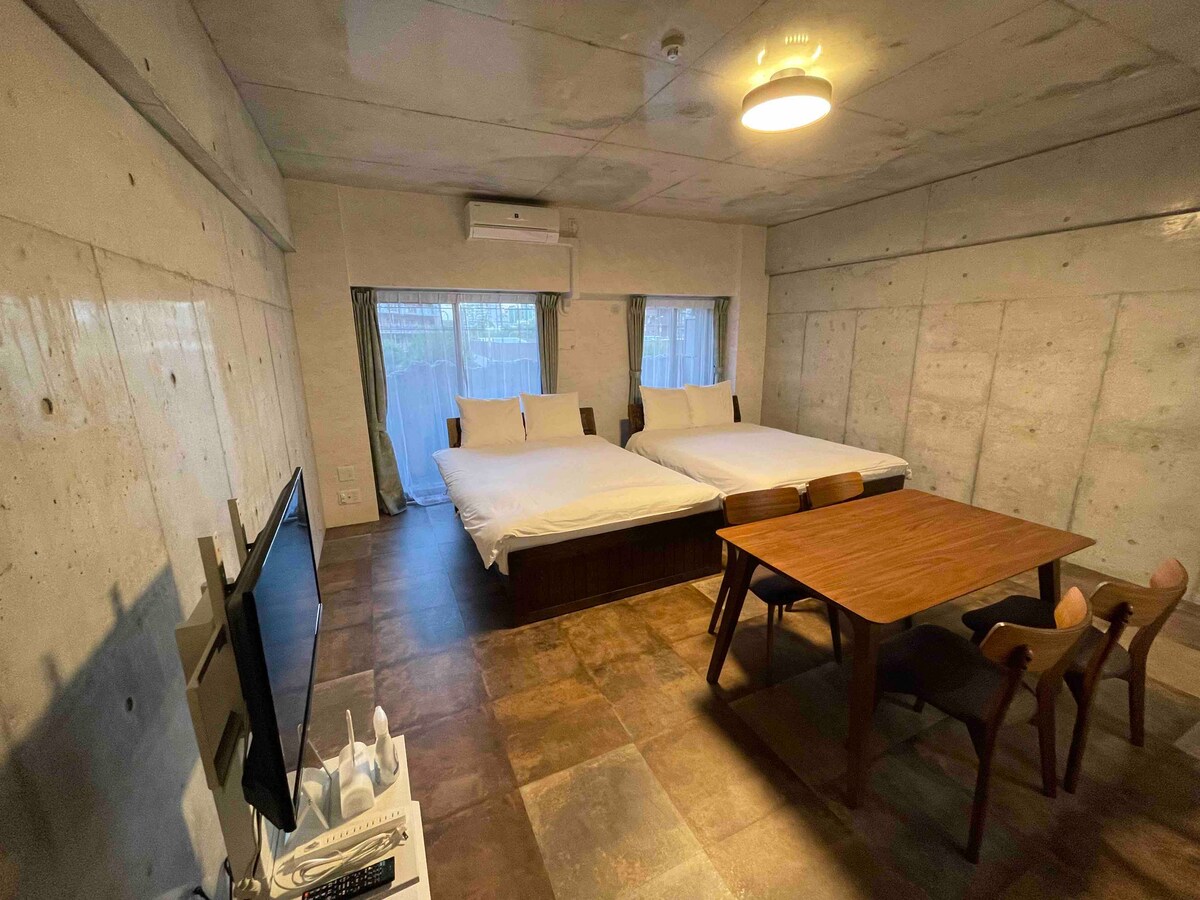 ★BONJOUR★ I am looking forward to meeting you♪ J'ai hâte♪ de vous rencontrer♪ Merci de visiter mon logement (* ^ ^ *) Excellent emplacement, chambre pour 4 personnes MAX♪ ※ Veuillez lire tout le contenu de l'annonce jusqu'à la fin ※ ■Notre chambre est située à un arrêt de Namba, à un endroit pratique. 6 minutes à pied de la station Daikokucho sur la ligne Midosuji du métro d'Osaka. Il est situé à 3 minutes à pied de la station Imamiya de la ligne circulaire d'Osaka, c'est un endroit idéal pour visiter Osaka ! Il y a aussi plusieurs places de parking payant devant le bâtiment et à moins d'une minute à pied, ce qui en fait un emplacement pratique pour ceux qui viennent en voiture. Au rez-de-chaussée de l'★appartement, il y a un restaurant cinéma unique, où vous pourrez voir des films et déguster un steak de bœuf Matsusaka à un prix raisonnable ! Il y a aussi un service gratuit de boissons sans alcool pour les clients♪ Il y a un supermarché et un dépanneur à■ proximité, vous pouvez donc faire des achats soudains pendant votre séjour, et il y a un restaurant populaire d'okonomiyaki et un restaurant coréen à l'arrière du bâtiment, vous pouvez donc également manger à proximité.