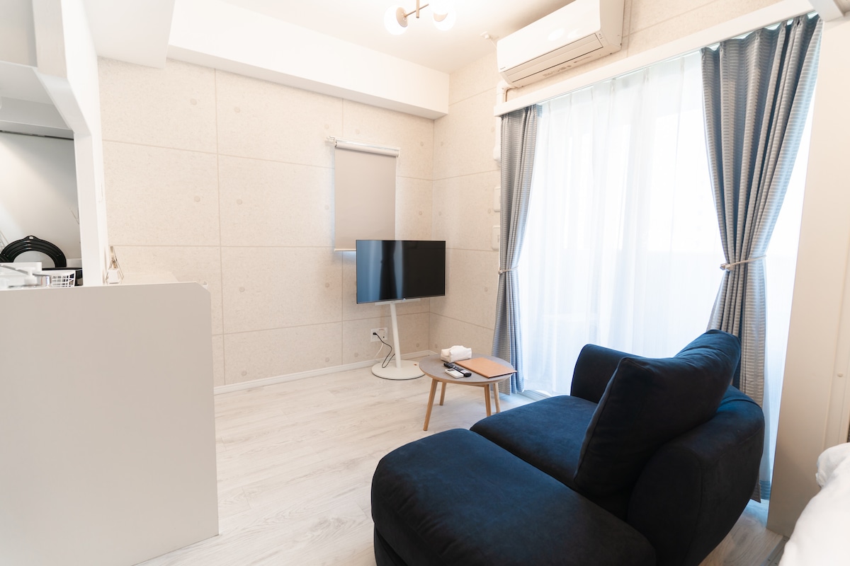 蓝色海洋风・治愈与放空|天下茶屋5分|关空直达|通风透光|2卧室+大客厅|办公桌|Netflix