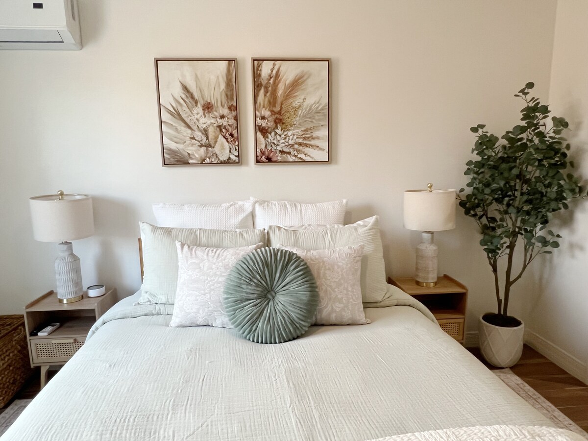 Maison d'hôtes lumineuse et entièrement séparée à l'arrière d'une maison avec une entrée indépendante, idéale pour deux. Propre, moderne et soigneusement équipé, cet espace offre intimité et confort avec lave-linge et sèche-linge dans l'appartement, climatisation et kitchenette. Accès facile aux services essentiels locaux : à 5 minutes de l'hôpital Onvida et de Sprouts, et à quelques minutes des cafés, des restaurants et des magasins du quartier.