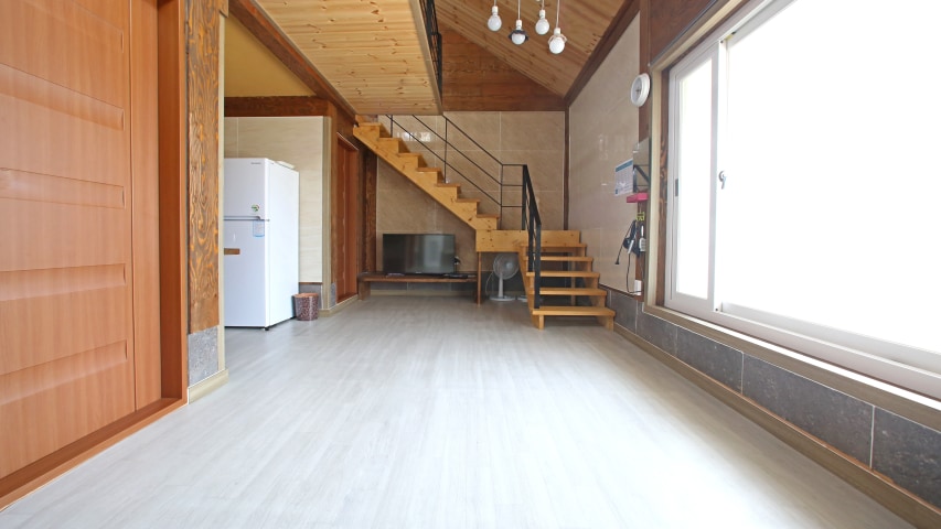 Salon + cuisine + loft + 1 chambre (environ 20 pyeong au premier étage/environ 6 pyeong au deuxième étage) Disponible jusqu'à 6 personnes Il y a des préoccupations concernant la double réservation, alors n'oubliez pas de nous appeler. ※ Encore une fois, veuillez confirmer votre réservation. - Si le nombre de voyageurs dépasse la réservation, l'entrée et non remboursable. L'heure d'arrivée est de 14 h à 20 h et l'heure de départ est 11 h. ※ Veuillez nous contacter à l'avance lorsque le nombre de personnes change ou lorsque vous l'utilisez en dehors de l'heure standard. - Pour la commodité et l'hygiène des autres voyageurs, nous facturons des frais supplémentaires pour les animaux de compagnie qui les accompagnent. Veuillez vérifier 50 000 won par animal lors de la réservation et porter une attention particulière aux incidents de sécurité.