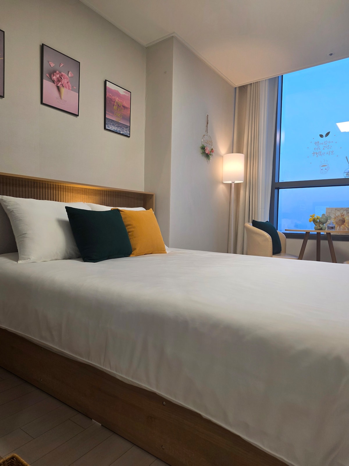 Nous avons préparé un espace où vous pourrez profiter d'un repos confortable et d'un rassemblement précieux avec une lumière du soleil chaude et une vue dégagée. Nous avons préparé une chambre confortable avec un lit agréable et une literie propre. ● Exemple de préparation de la literie en fonction du nombre de personnes - Pour 2 personnes (basique) 1 lit queen size préparé - Pour 3 ou 4 personnes (supplémentaire) 2 lits queen size préparés ※ Autre que la literie de base fournie ci-dessus Si vous voulez utiliser un lit spacieux Si vous demandez à l'hôte à l'avance Veuillez Il est situé près du parc du festival Songdo Dalbit, du magasin d'usine Songdo Hyundai Premium, de la tour G, du campus international de Yonsei et d'Incheon Daein. Nous vous souhaitons un excellent séjour. Si vous séjournez pour un long séjour, veuillez nous contacter par message. Bon voyage à Songdo International City.