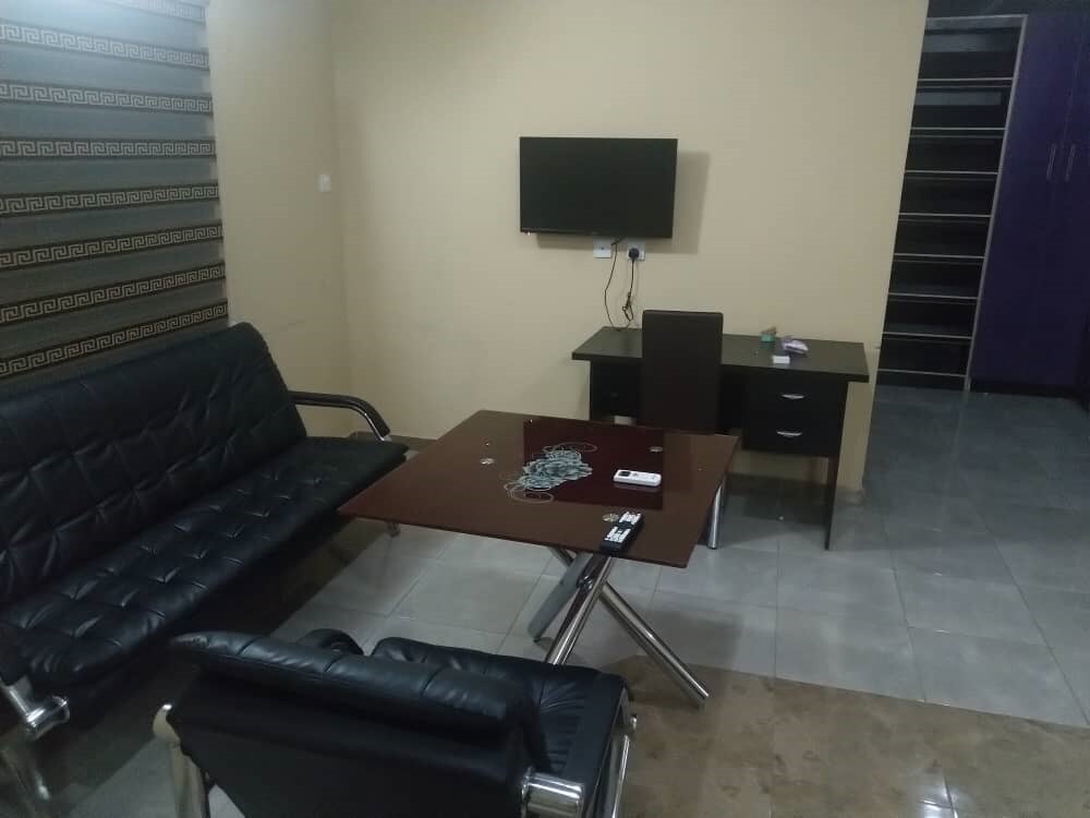 Appartement privé avec caméra de vidéosurveillance à 360 degrés, billard snooker, vastes salons, cuisine bien équipée, alimentation électrique de secours. Situé dans une zone centrale à front élevé du GRA avec clôture de périmètre et sécurité 24 heures sur 24 avec une équipe combinée de sécurité privée, la police et NSCD Corp.