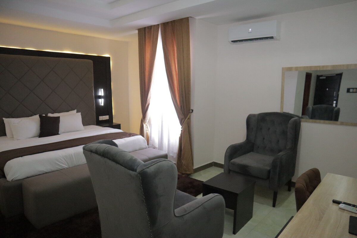 Doté d'un bar, d'un salon commun et offrant une vue sur la ville, le Nue Crest Hotel est situé à Enugu, à 14 km de la forêt de pins Ngwo. Parmi les équipements de cet établissement, il y a un restaurant, une réception ouverte 24h/24 et un service d'étage, ainsi qu'une connexion Wi-Fi gratuite. Toutes les chambres de l'hôtel sont équipées de la climatisation, d'un coin salon, d'une télévision par satellite à écran plat, d'une cuisine, d'un coin repas et d'une salle de bain privée avec articles de toilette gratuits, d'une baignoire et d'un bain à remous. Les chambres disposent d'un bureau et d'une bouilloire.