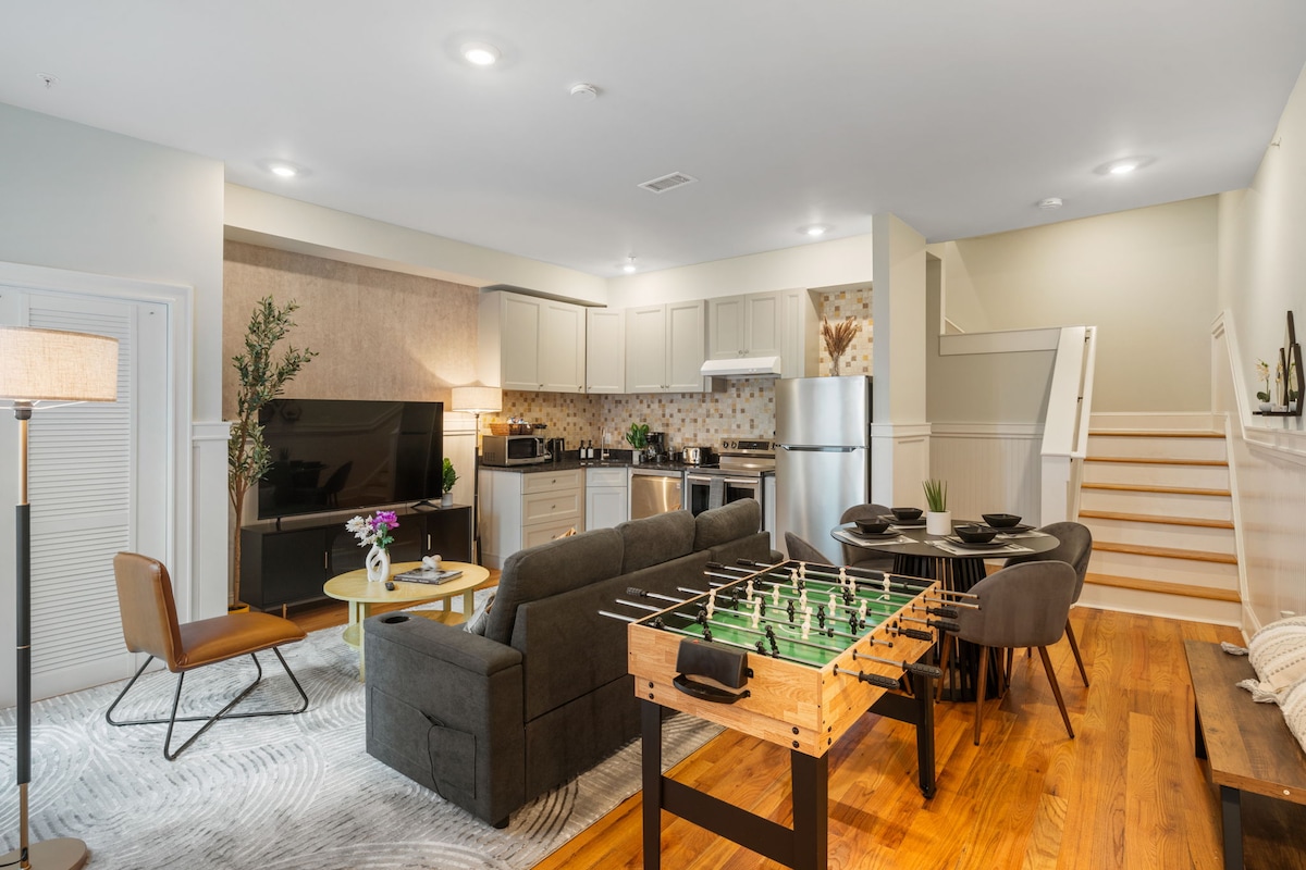 Magnifique appartement de 1 550 pieds carrés rénové sur deux niveaux avec 2 chambres et 2,5 salles de bain dans un immeuble privé ! Peut accueillir confortablement 4 personnes (2 lits Queen Size) et il y a beaucoup d'espace pour se détendre. Meubles et décoration magnifiquement aménagés, situé dans une rue pavée tout simplement charmante. Emplacement imbattable dans la vieille ville : à quelques pas de toutes les attractions de Philadelphie. C'est une propriété merveilleuse pour les partenaires commerciaux en voyage qui veulent de l'espace, des escapades en famille et des réunions de groupe intimes.