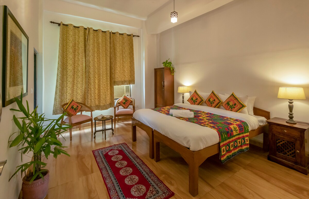Une base idéale à Delhi — spacieuse, propre et magnifiquement entretenue au cœur de la ville ! • Pour les acheteurs de mariage - South ex, Defence Colony et Shahpur Jat boutiques de créateurs à seulement 4-5 minutes • Parfait pour les familles, les grands groupes et les touristes qui veulent du confort, de l'espace et un emplacement central calme • Pratique pour des excursions d'une journée à Agra, Mathura, Jaipur, Vrindavan Que vous soyez en voyage pour un court séjour ou un séjour prolongé, vous vous sentirez comme chez vous, et comme beaucoup de nos voyageurs, vous reviendrez peut-être !
