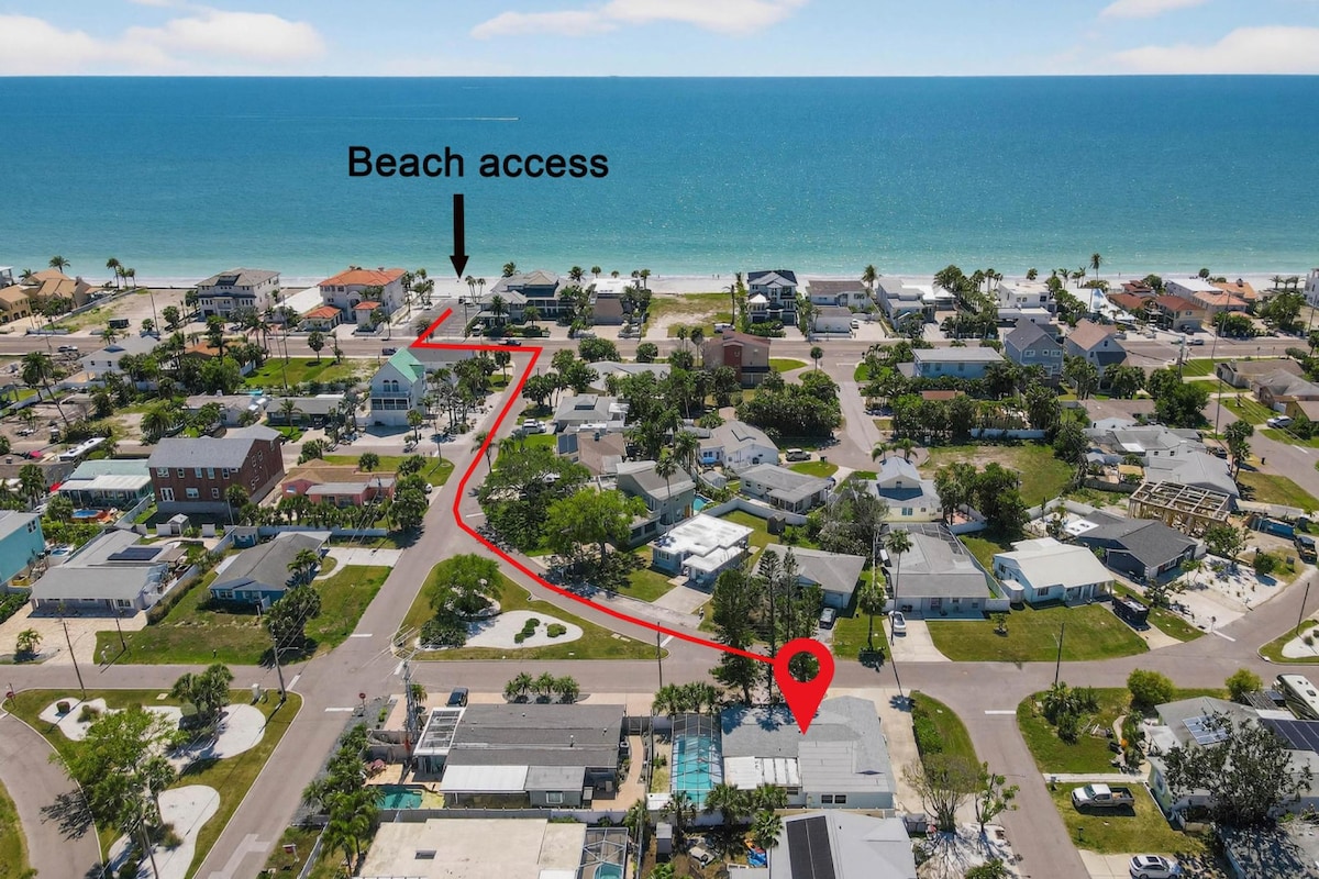 Bienvenue à The Break, votre oasis tropicale près de Treasure Island Beach. - 2 chambres, 1 salle de bain pour 4 personnes maximum - Salon confortable avec télévision connectée et jeux de société - Cuisine toute équipée pour des repas gastronomiques - Jacuzzi et barbecue relaxants dans le jardin tropical - Équipement de plage fourni pour votre confort - À quelques pas des attractions locales et de la plage - Entrez dans notre petit coin de paradis dans notre propriété récemment rénovée, un véritable sanctuaire familial avec une touche de Floride.
