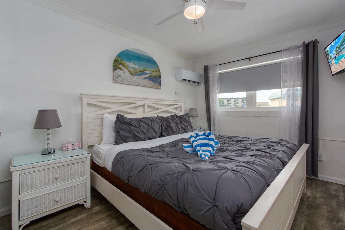 Charming Pool-View Studio at Tropic Terrace – Suite #56 2nd Floor Suite | No Elevator Welcome to Suite #56 at the Tropic Terrace Condominium Resort — a peaceful, pool-facing studio just steps from the sugar-white sands of Treasure Island, Florida. With 265 square feet of cozy comfort and classic beachside charm, this studio is perfect for couples or solo travelers looking for a sunny getaway by the Gulf.