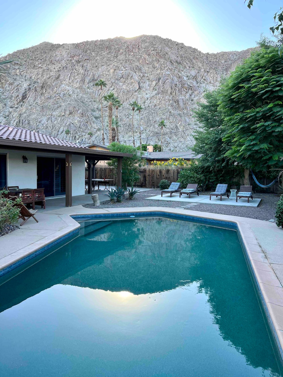 Ne cherchez pas plus loin, HPH est l'endroit idéal pour votre escapade de printemps relaxante. Sortez de la neige et profitez du temps chaud du désert. 🎾Ce logement se trouve à quelques minutes en voiture ou à pied du tournoi de tennis🏟️ Chargeur pour ⚡️véhicules électriques installé et gratuit pour les voyageurs Chauffage de ⚡️ piscine disponible sur demande. Au pied des montagnes de Santa Rosa, HPH offre un espace de détente pour toute la famille. La vaste cour arrière dispose d'une grande piscine, d'un brasero, d'un terrain de pétanque, d'un green, d'une télévision et de plusieurs zones de détente.