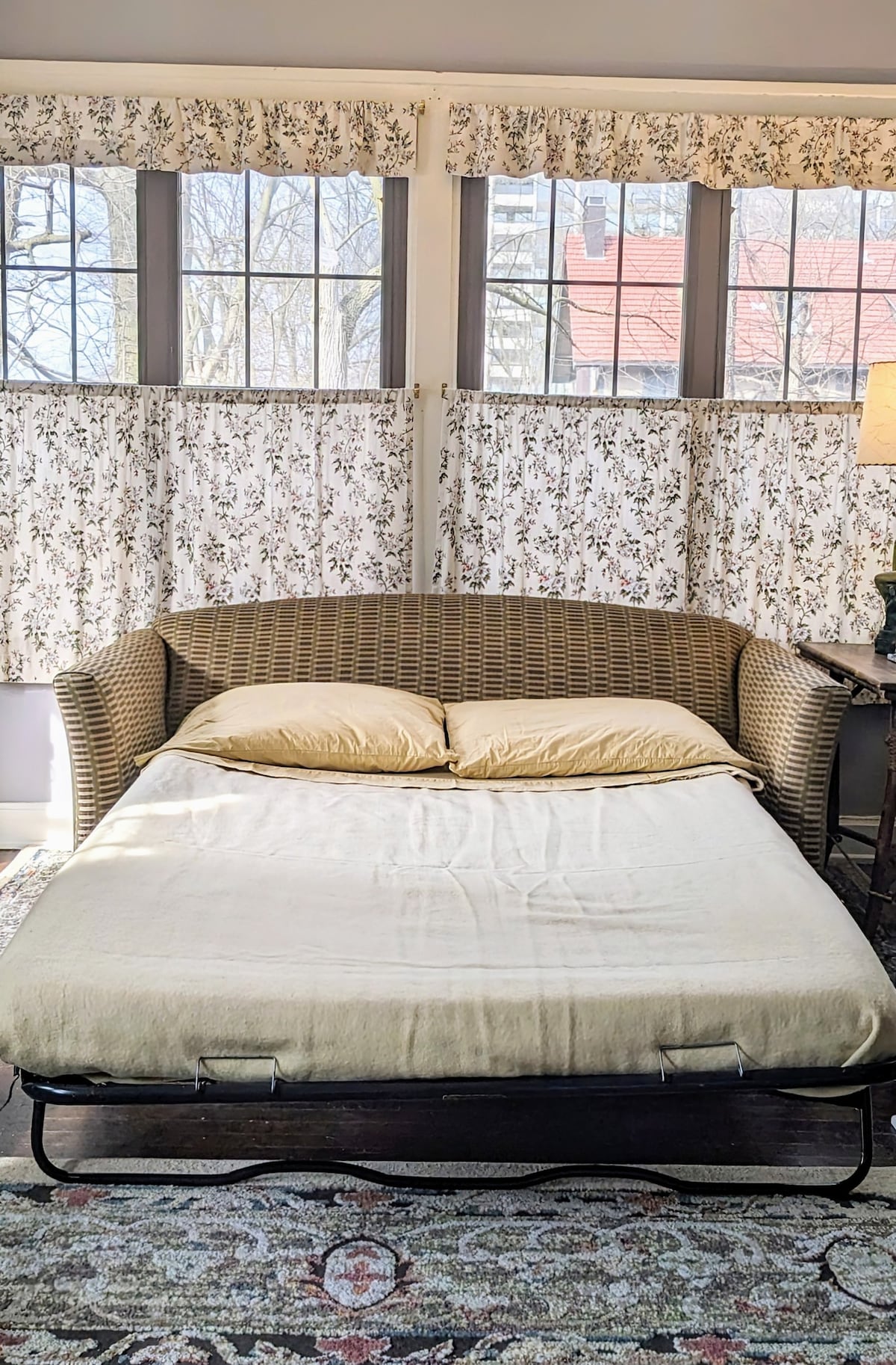 J'aime me vanter que c'est le studio le plus mignon de la ville. Il est situé dans un immeuble d'appartements en briques de style Arts & Crafts construit en 1915 et conserve beaucoup de ses caractéristiques architecturales d'origine. Il est meublé avec un mélange éclectique d'antiquités et de pièces modernes, décoré avec des œuvres d'art originales et vintage, et rempli de vaisselle et d'argenterie vintage. Si vous aimez boire dans un bocal, c'est l'endroit idéal pour vous ! Il est meublé pour le confort et l'intimité. Son haut plafond et ses fenêtres lui donnent du caractère.