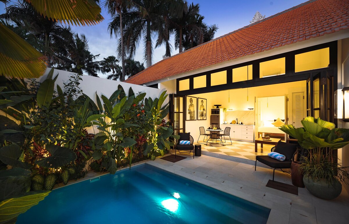 Si vous êtes à la recherche d'une superbe villa avec accès à tous les bars et restaurants les plus animés de Seminyak, réservez la Villa Chino. Emplacement stratégique : - À 1 min à pied d'Eat Street - 7 minutes à pied de La Favela - À 5 minutes à pied du Revolver Espresso Cafe - À 5 minutes à pied du centre commercial Seminyak Village - À moins de 10 min à pied de la plage de Petitenget Le cadre blanc et lumineux, et les portes vitrées du sol au plafond, inondent l'espace de lumière naturelle et offrent un intérieur chaleureux et accueillant pour profiter de la retraite paradisiaque de Bali.