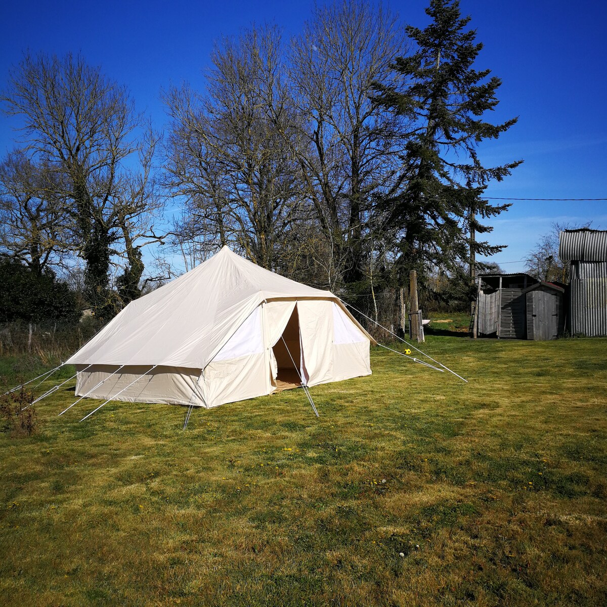 Nous avons 2 belles tentes de glamping. Vous avez toujours tout le site pour vous et ne partagerez aucune installation avec d'autres voyageurs. Vous pouvez réserver 1 tente (2-3 personnes), ou 2 tentes (4-6 personnes). Si vous êtes plus de 6, ou si vous avez des questions sur les enfants, les bébés ou autre chose, n'hésitez pas à nous contacter, nous pourrons peut-être vous aider. Les tentes offrent une vue sur la campagne et sont situées parmi des arbres fruitiers. Vous avez un accès privé à une cuisine complète, des salles de bain, une piscine et un espace de détente couvert.