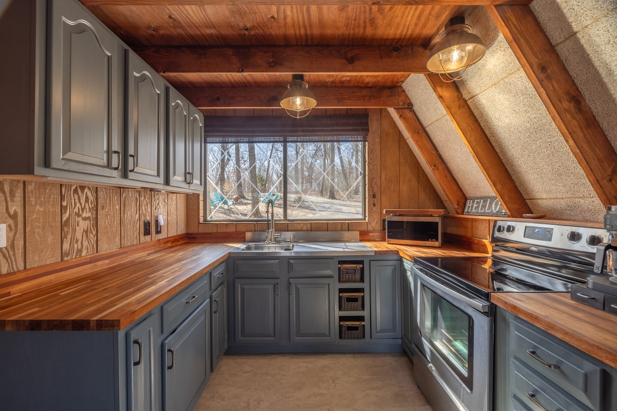 Le printemps est en fleurs dans votre propre chalet privé et confortable. Les réductions saisonnières s'appliquent toujours ! Niché dans les arbres, ce chalet privé en forme de A surplombe le lac Sonnenblick à travers les arbres et comprend son propre quai isolé juste en bas du chemin. Détendez-vous sur la terrasse spacieuse, rassemblez-vous près du foyer ou plongez dans le tout nouveau jacuzzi sous les étoiles. À l'intérieur, vous trouverez une retraite impeccable et soigneusement conçue avec des lits confortables, une cuisine de chef, une connexion Wi-Fi par fibre optique et une vue sereine sur la forêt.
