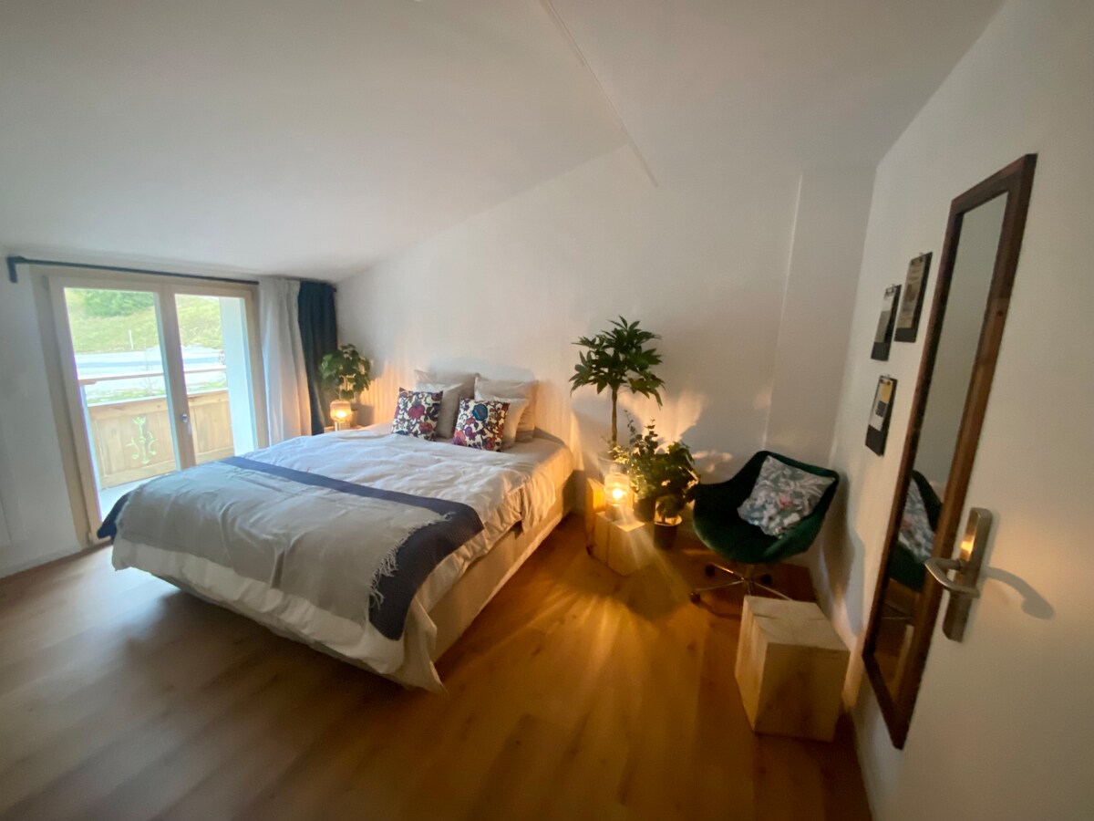 « The Heiti Lodge » a beaucoup à offrir. Situé à Gsteig entre Gstaad et Les Diablerets, vous avez accès aux hautes montagnes comme le Glacier 3000 et à la charmante et célèbre ville de Gstaad. Cette chambre est une chambre privée sans salle de bain privée. Vous trouverez une salle de bain commune dans le couloir.